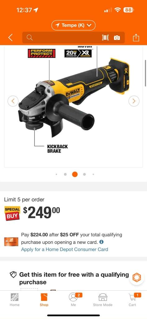 DEWALT 20V MAX XR Cordless Brushless 4.5 in. Paddle Switch Small Angle Grinder with Kickback Brake (Tool Only