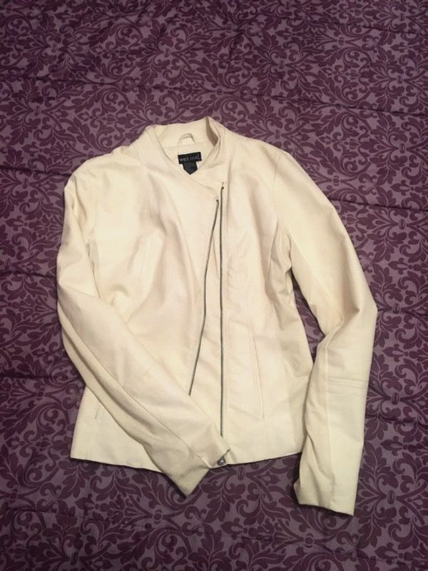 Beautiful ivory color. Faux leather front with knit fabric back. Size: Small