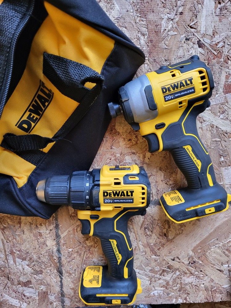 new Dewalt ATOMIC 20V MAX Cordless Brushless Compact 1/4 in. Impact Driver And ATOMIC 20V MAX Cordless Brushless Compact 1/2 in. Drill/Driver (TOOLS ONLY) 633. bx24. 2,5,9,5