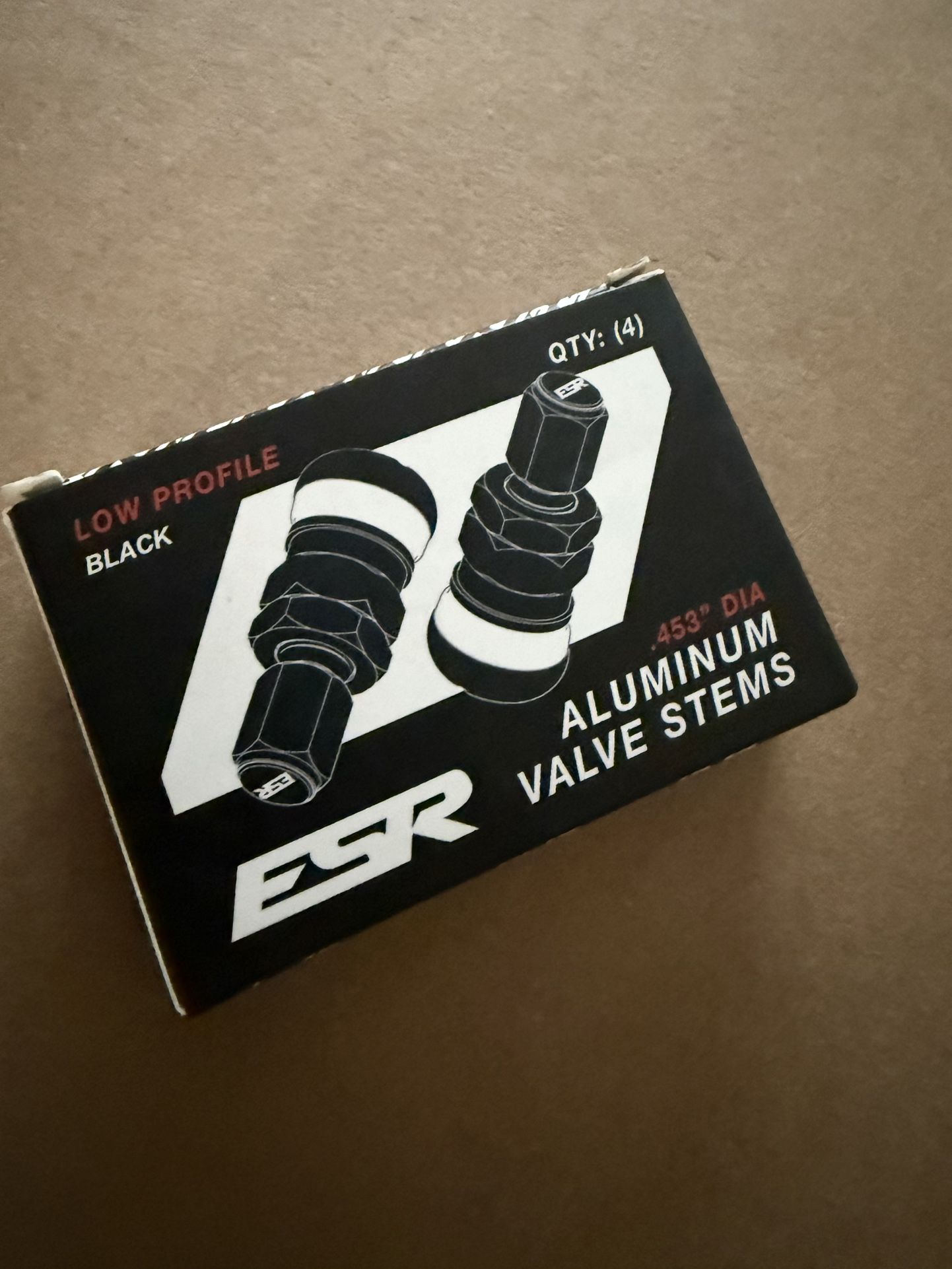 ESR Performance low Profile Black Valve Stems Brand new never mounted I just took one out of the box to check it out but doesn’t work with my wheel setup because I’m using TPMS Sensors Y payed $43.65 for the set Selling for $40 firm