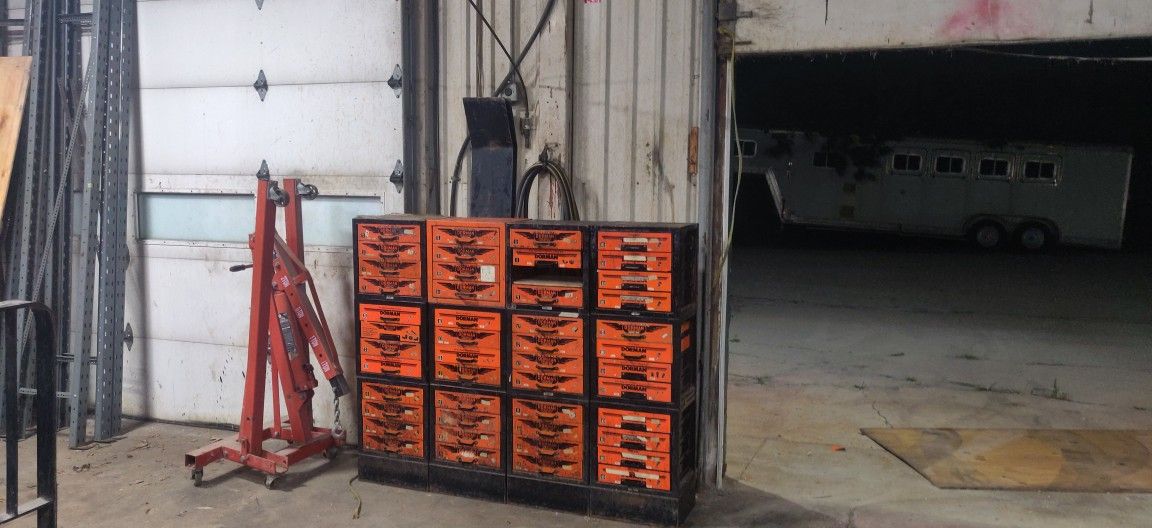 Many available.....90% are full of hardware. Make offer on one or all..... Original dorman hardware storage boxes.
