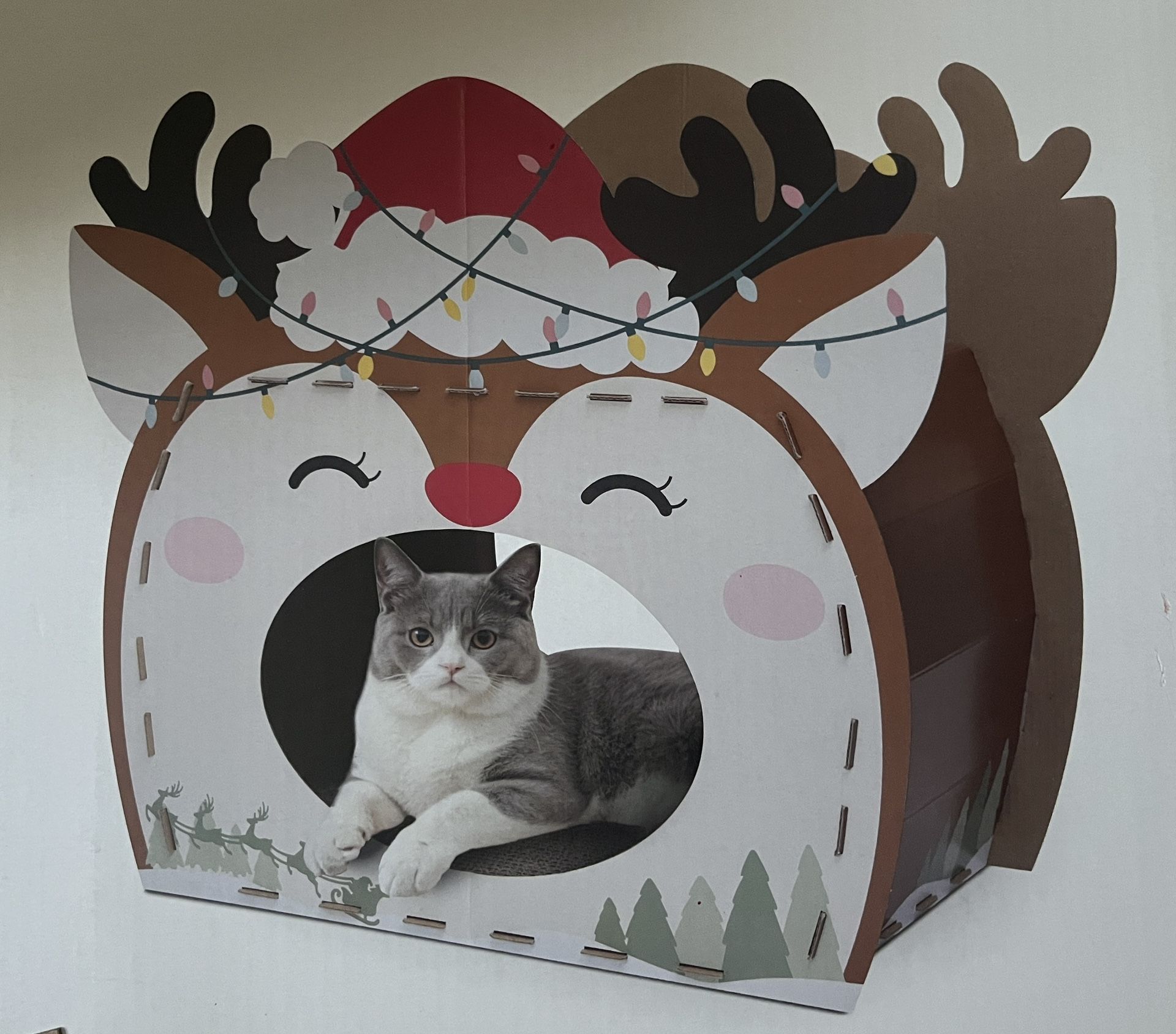 New in box! Reindeer cat scratcher playhouse Located in Coconut Grove.