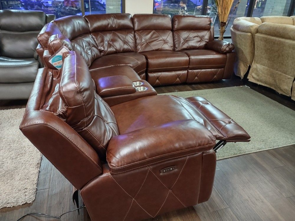 New Genuine Leather 6 Pc Sectional Sofa With Three Power Recliners d Three Power Headrests