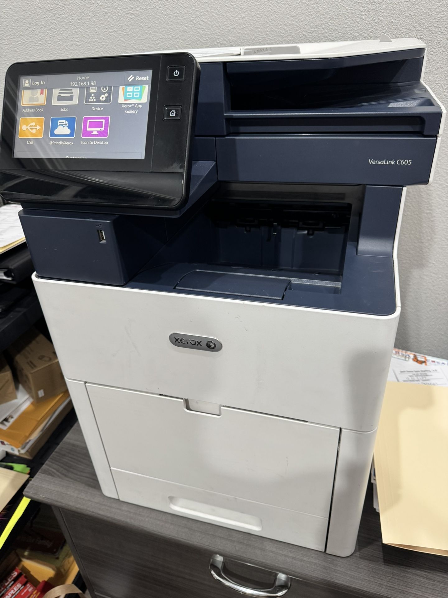 Xerox Versalink C605 Printer In great condition. Bough it thinking it took the same toner as the C505 (since I have a bunch of them), but found out the hard way they are different. My loss is your gain. Just ran out of cyan… Would consider local delivery for a small fee More pictures are available if needed.