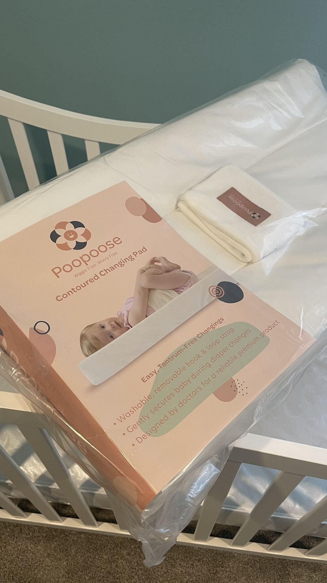 Poopoose - Wiggle free. Worry free. Contoured changing pad; size: 16” x 32”. New in package. Availability - 8 pieces. (All new). If buying all together $28 each.