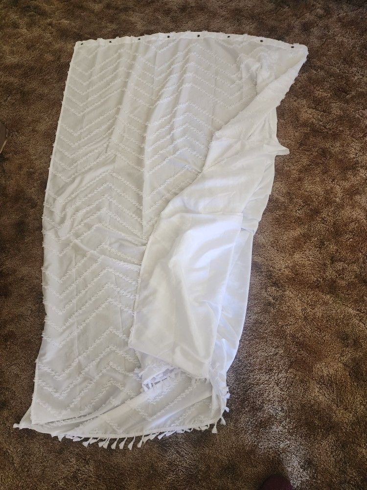 Fabric Shower Curtain, Boho, White