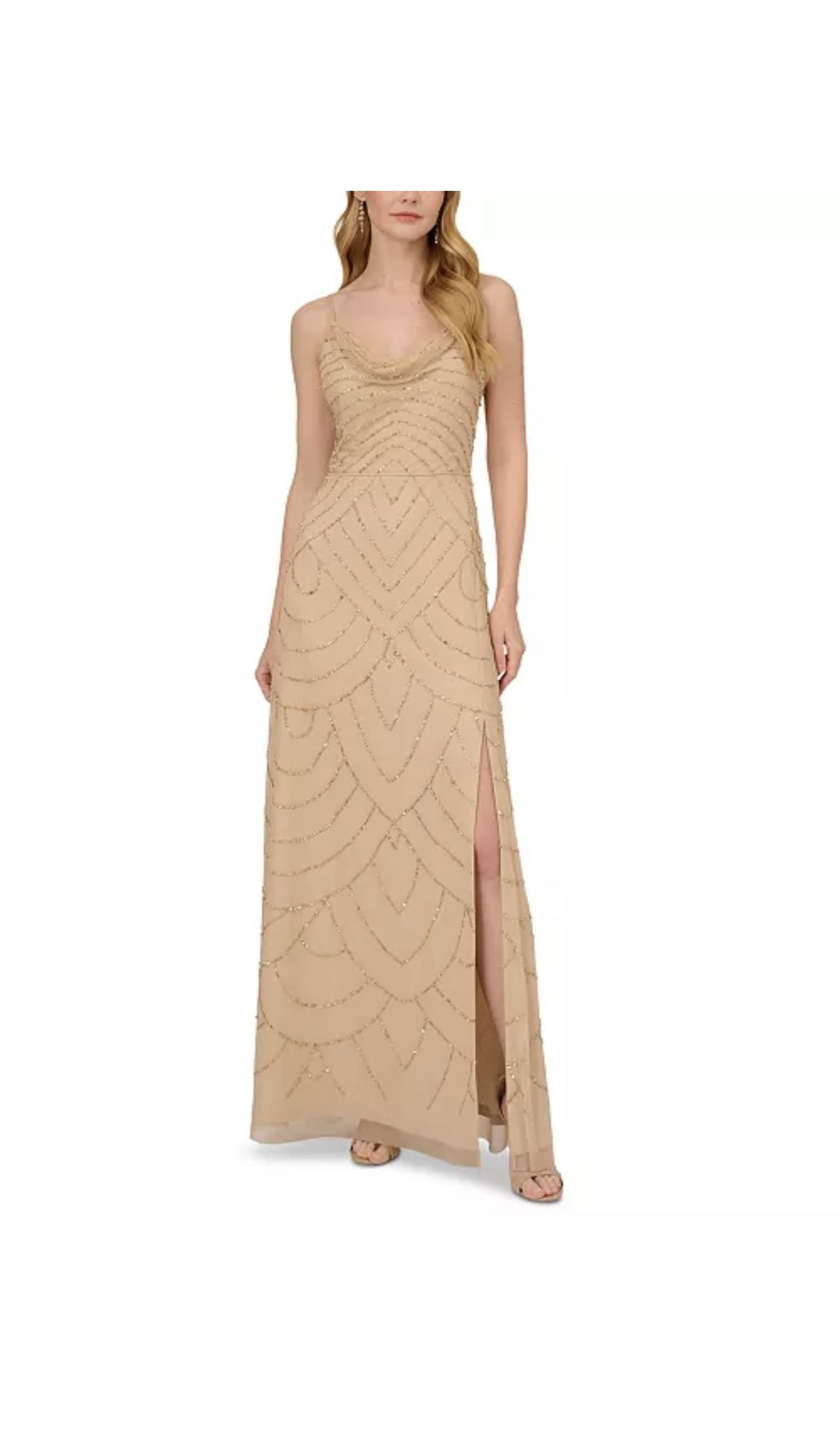 Adrianna Papell Champagne Beaded Maxi Dress Size 8