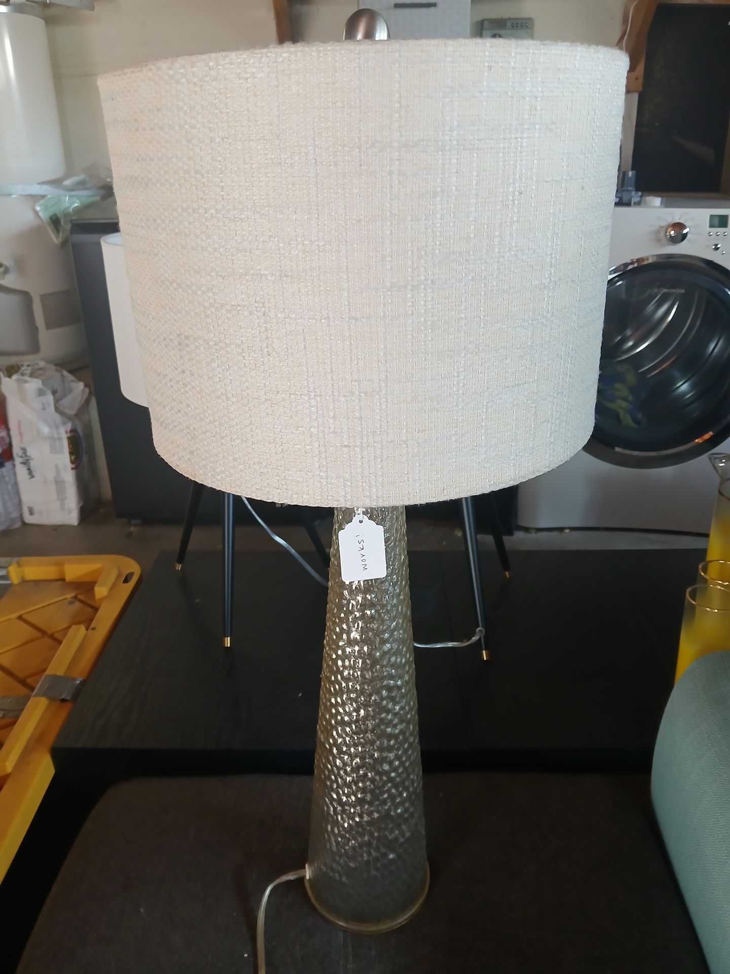Lamp with a fabric shade. Works.