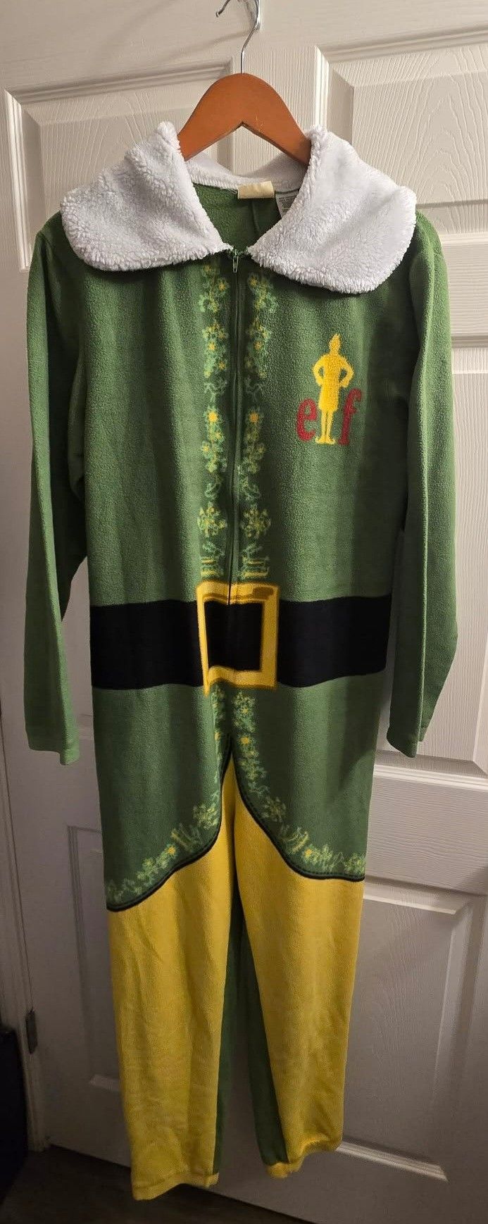 Adult size Medium buddy the elf onsie zip up one piece pajamas. In guud used condition. Pick up in Aloha (97003 zipcode), no holds, cross-posted.