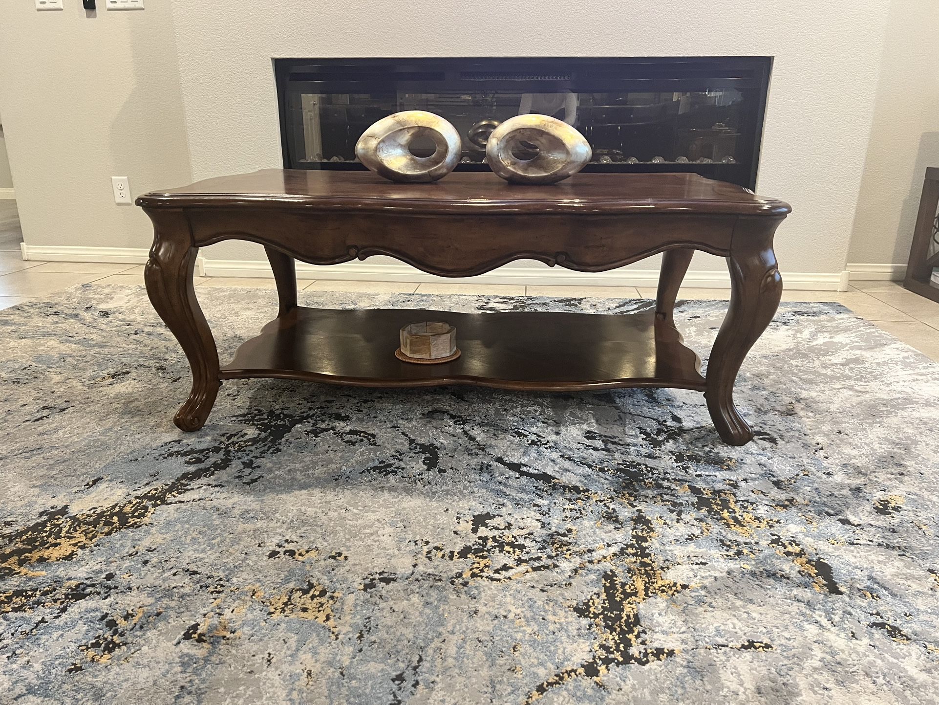 Cherry wood coffee table and end table used to stage a rental property. Very sturdy and heavy. $120 for both