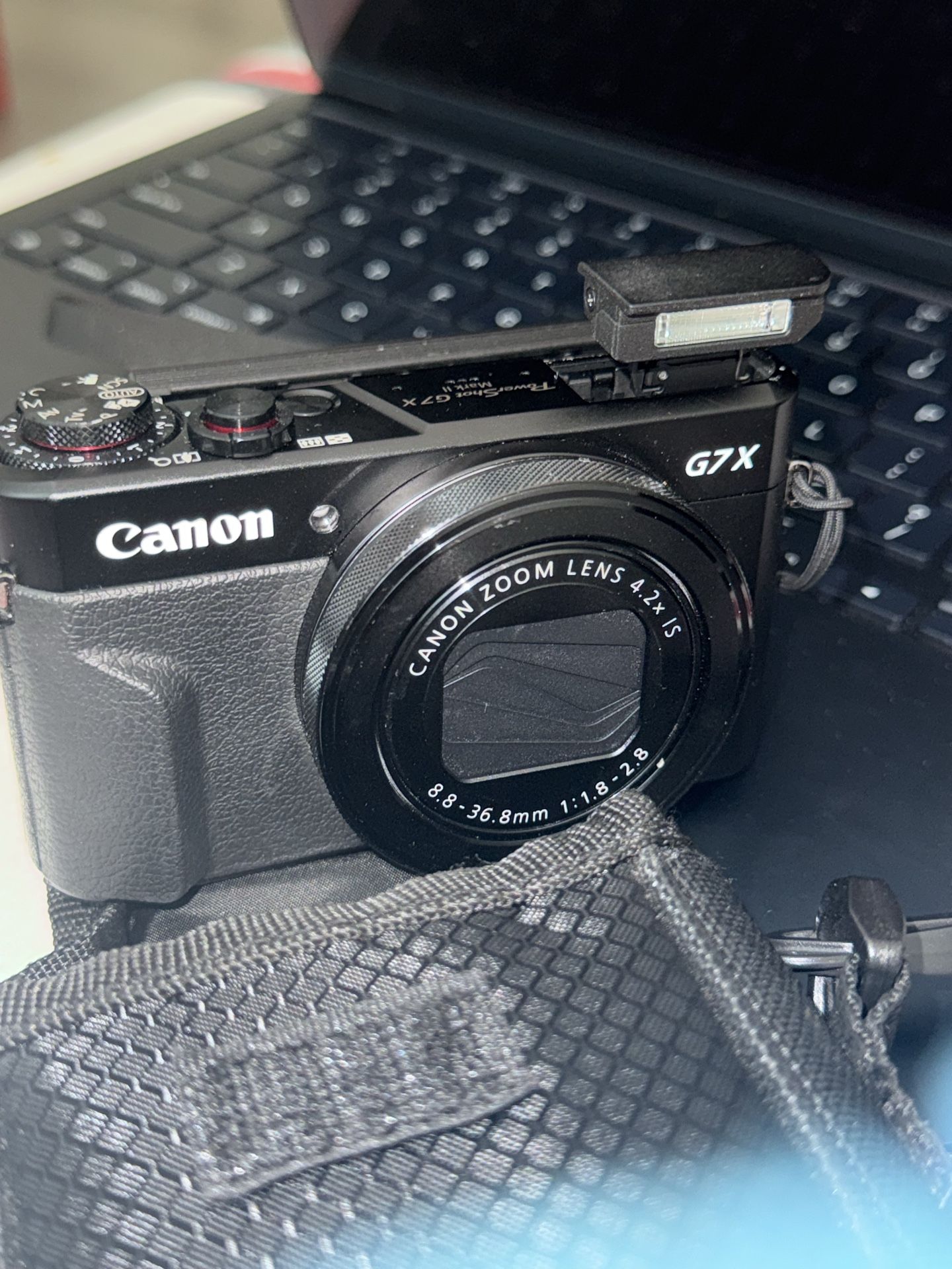 Still like new, only been used a few times, but everything in new condition. Pouch for camera is included as well as charger and blogging stick.