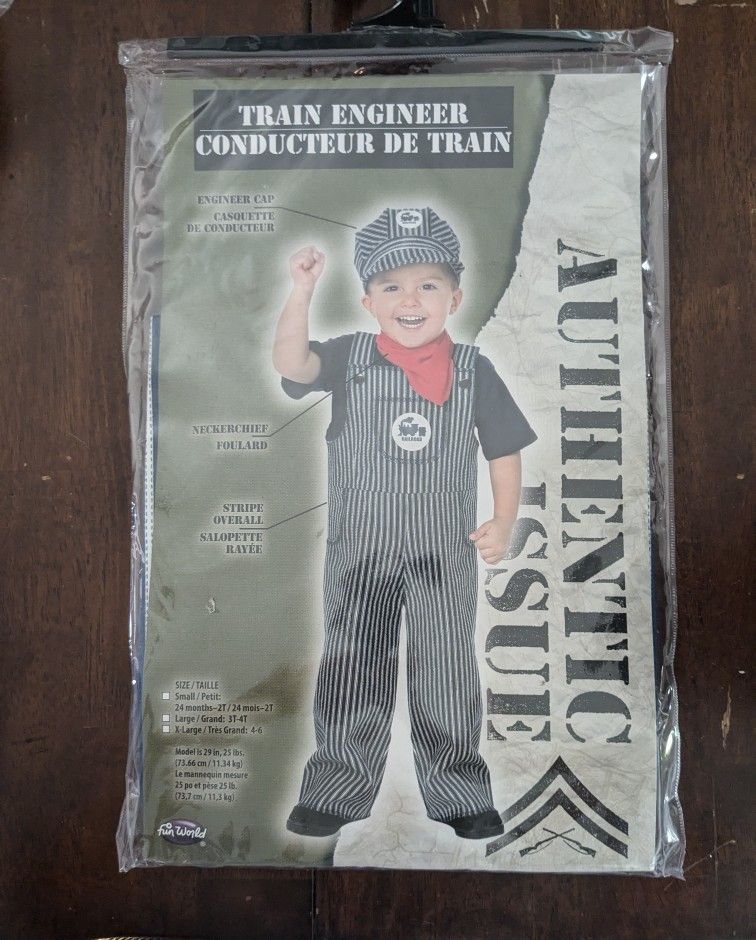 Train Engineer Costume with Hat Toddler Size 4-6. New In Package $15