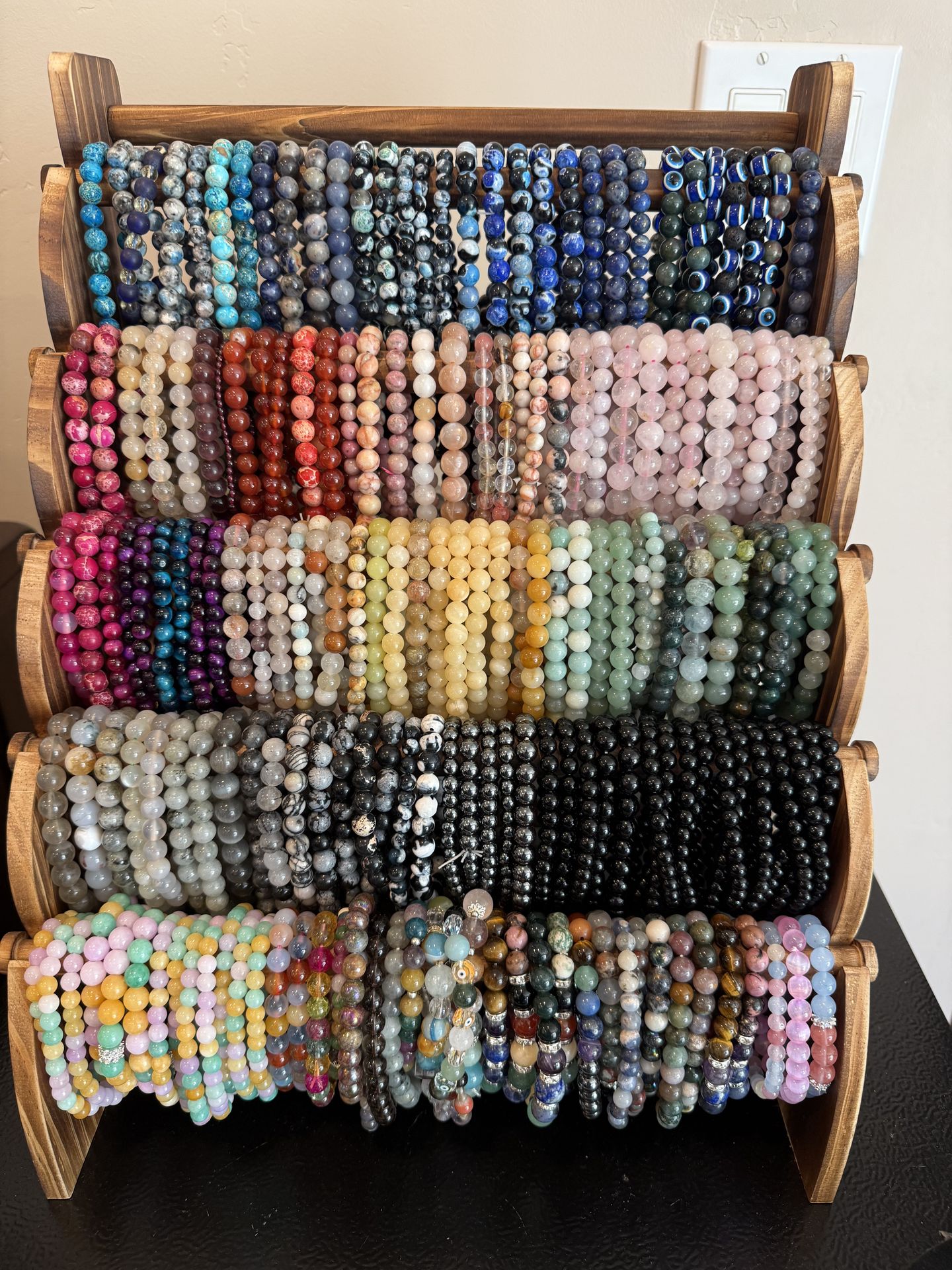 Huge selection of genuine stone/crystal bead bracelets in a variety of colors and styles! Perfect for gifts, stacking, or everyday wear. Stones include (varies): jasper, agate, quartz, turquoise, lapis-style, and more Stretch bracelets – one size fits most Great quality and vibrant colors Bundle Deal - 10 random assorted bracelets for $20 Pick Your Favorite $3 each if you want to choose specific bracelets Perfect for gifts, party favors, or adding to your own collection! Message me if you want to choose specific ones or bundle more!