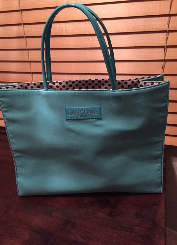 Lancome Tote Bag turquoise exterior with black and white polka dots inside. Really cute!ππΌπ