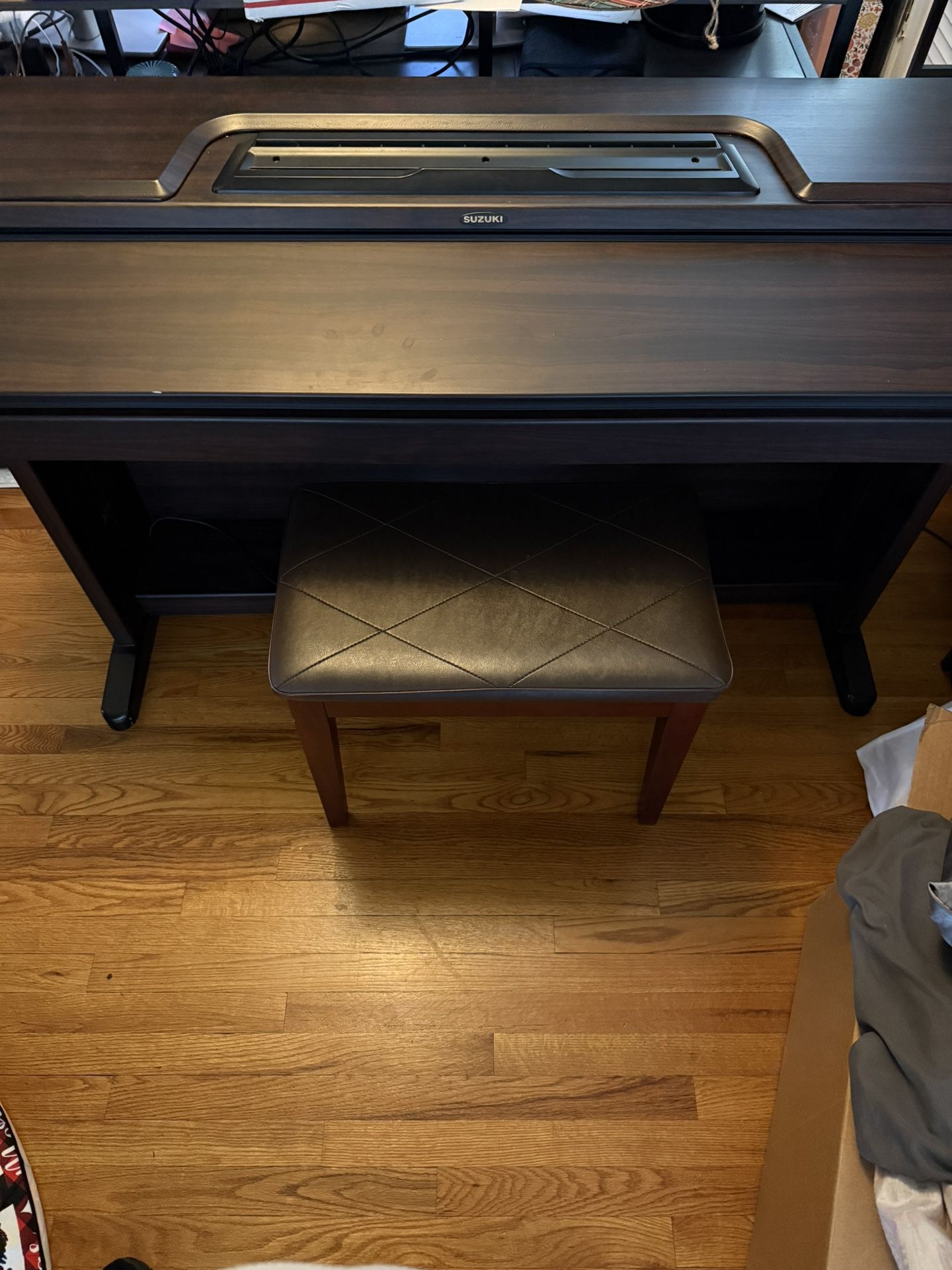 I’m selling a HP-100D Suzuki Digital keyboard. It has 88 weighted keys, with multiple sounds. It also comes with manual and headphones/bench.