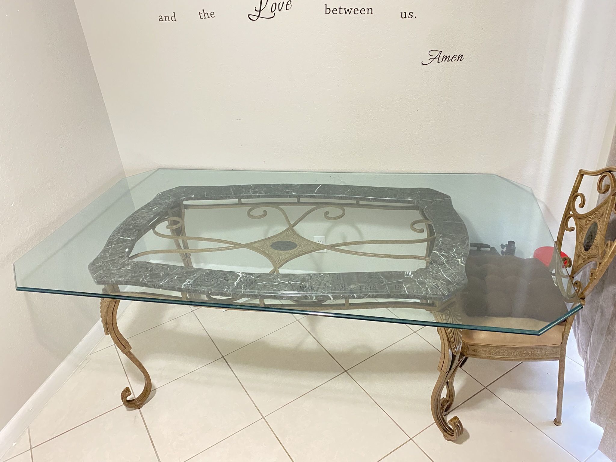 Dinning Room Set! 6Pc ; 1 Glass Marble Table, 4 Chairs and coffee table!