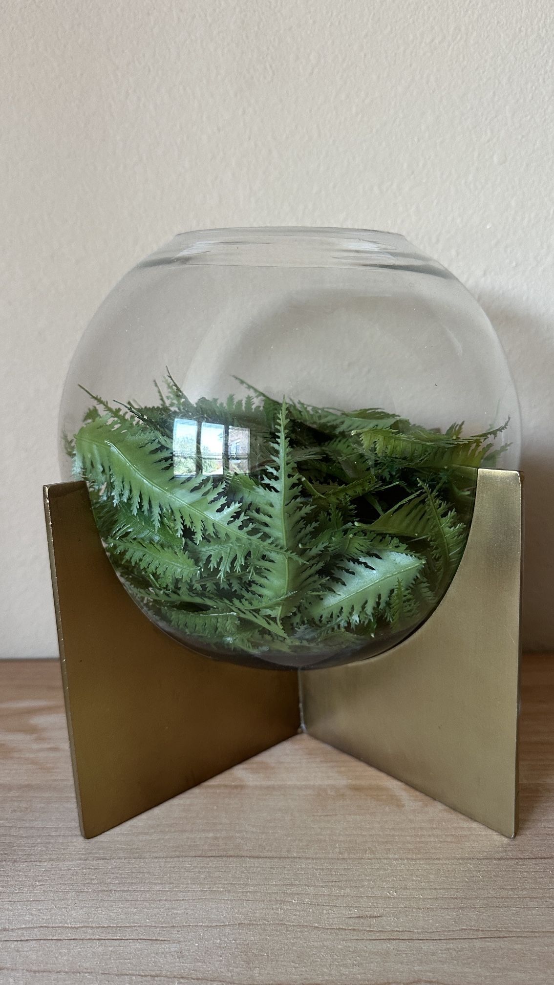 The metal has some imperfections (please see photos) but the glass is in perfect condition. Comes with the faux plants in the photos but they are easily removed. Purchased from West Elm in Dallas.