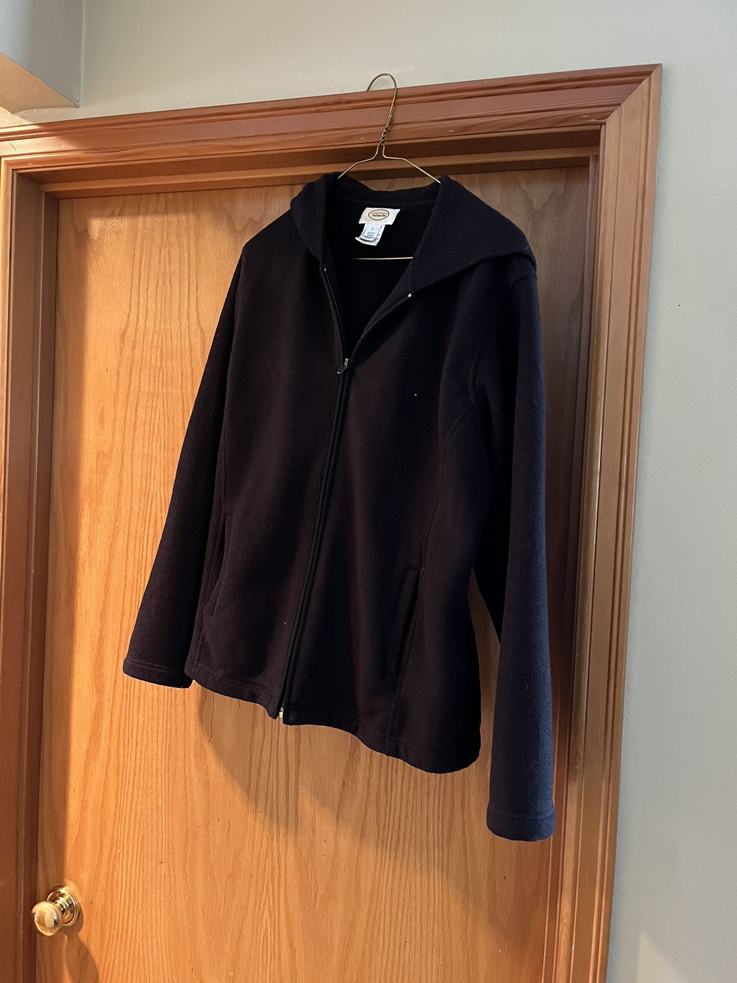 Talbots black zippered hooded jacket, size large.