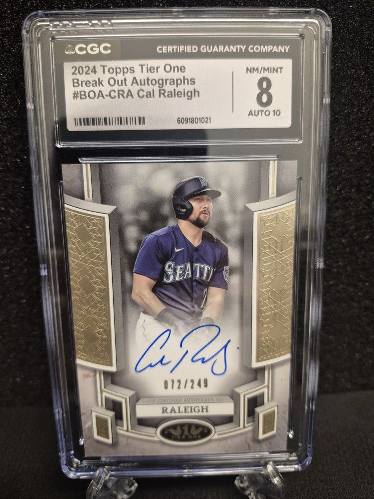 CAL RALEIGH 2024 TOPPS TIER ONE BREAK OUT AUTOGRAPHS #BOA-CRA CGC NM/MINT 8 / AUTO 10 #72 of 249 made