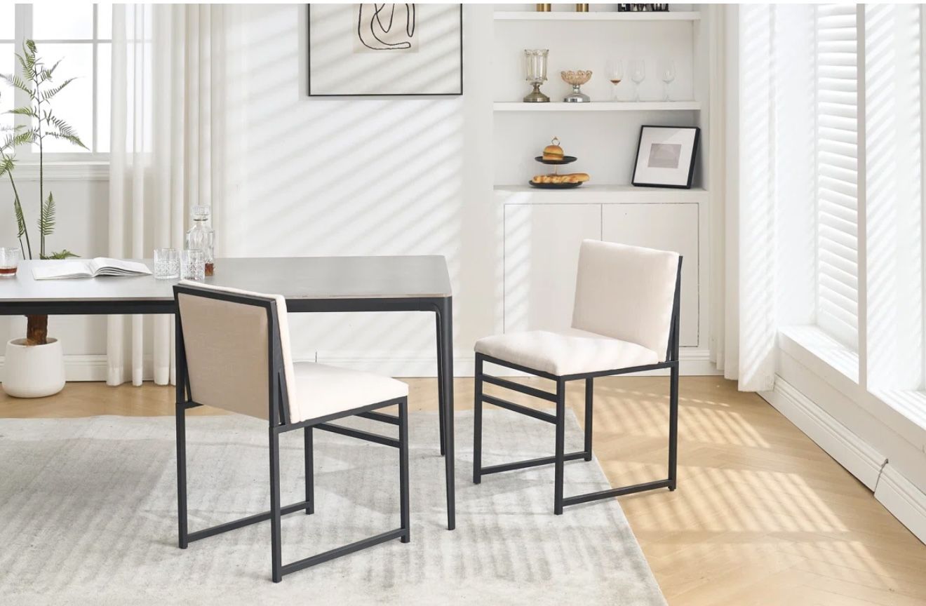 New Ivory Upholstered Dining Chairs Set of 2 | Minimalist Iron Racks | Modern Office Comfort