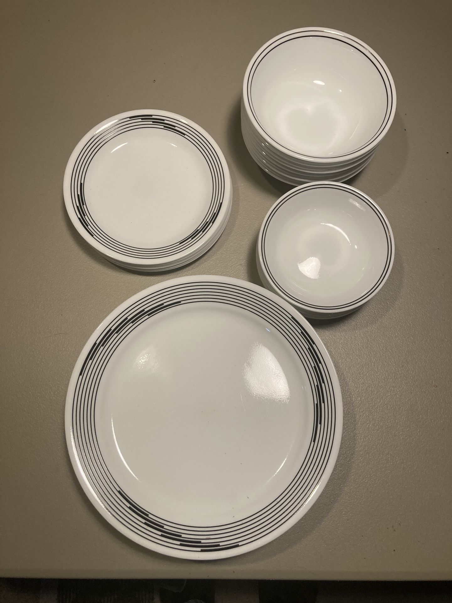 26 piece, Optic Black design. Two size dishes and two size bowls.