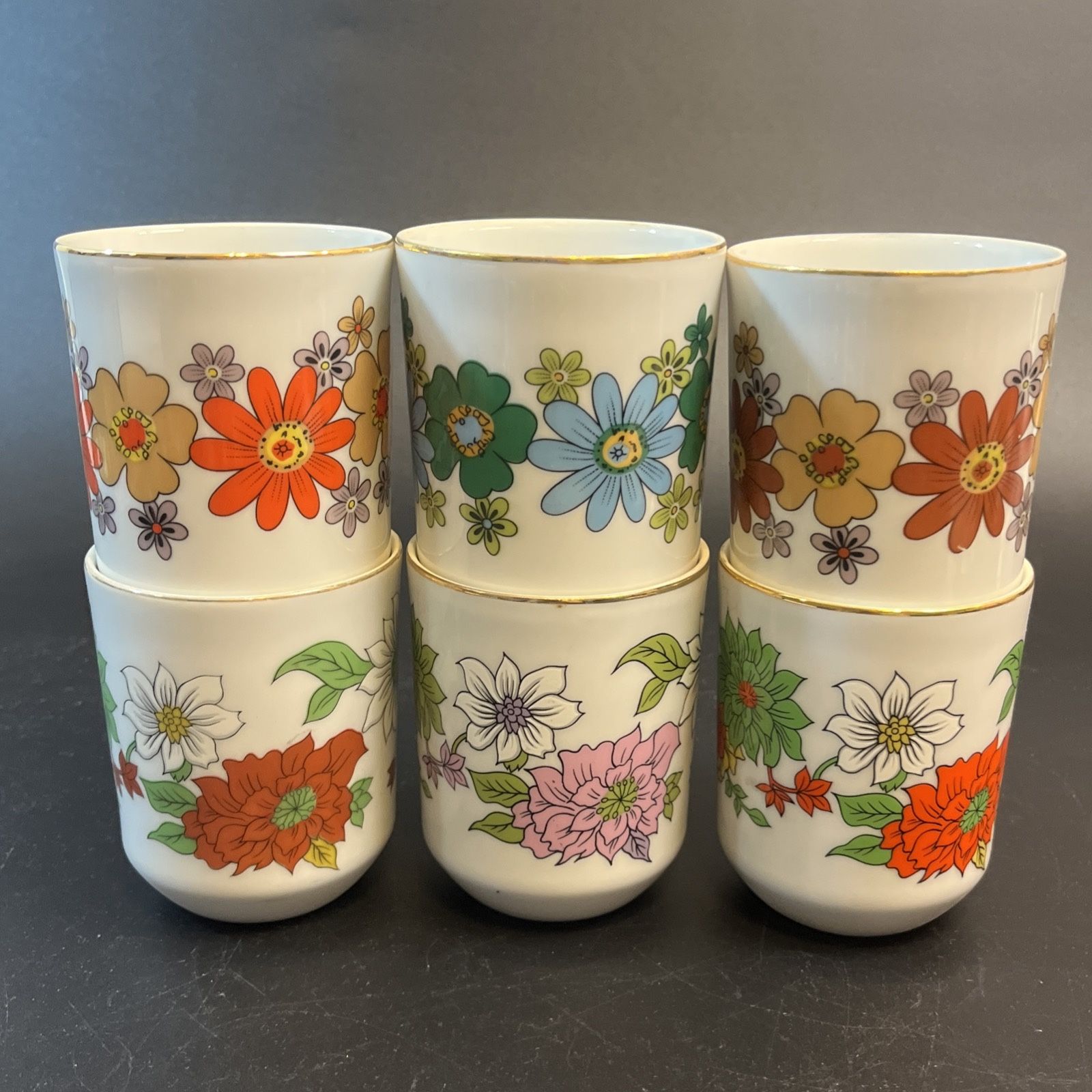 6 Vtg 1970's MCM Daisy Flowers Coffee Mug Tea Cup Set Lot Floral Japan 8 oz Gold
