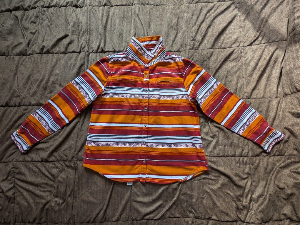 Men's Cabela's Button Up Heavy Flannel Southwest Aztec Shirt Orange Red Size XL