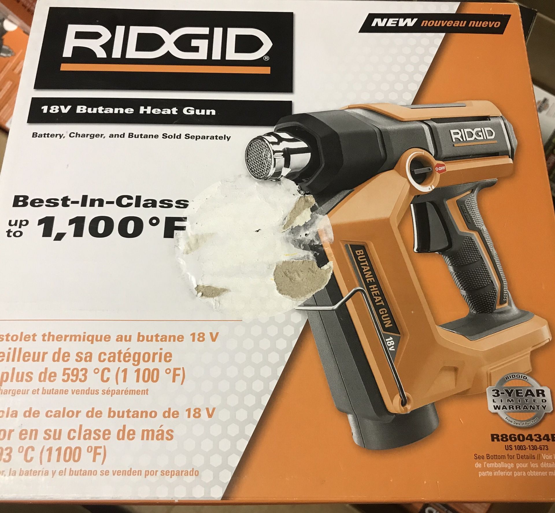 Brand new in the box Ridgid 18-Volt Cordless Butane Heat Gun. These retail with tax in the store for $141.57. Will take $70.00