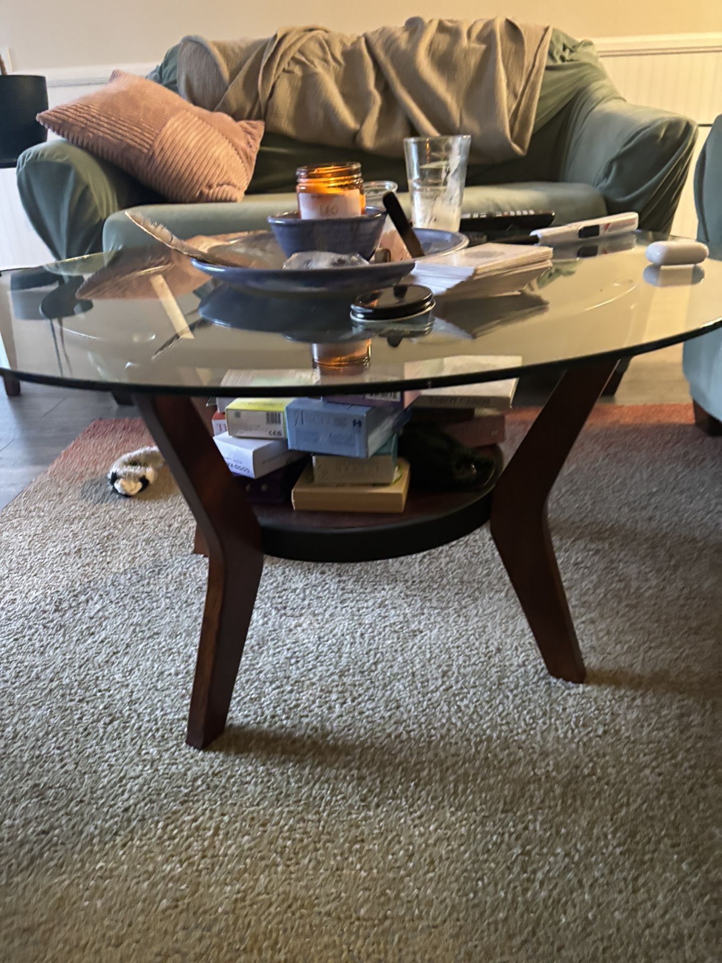 2 x small table height 25”diameter 22” 1 x large glass coffee table 35 height 18 1/2” New cost $295 Will entertain offers that are reasonable**