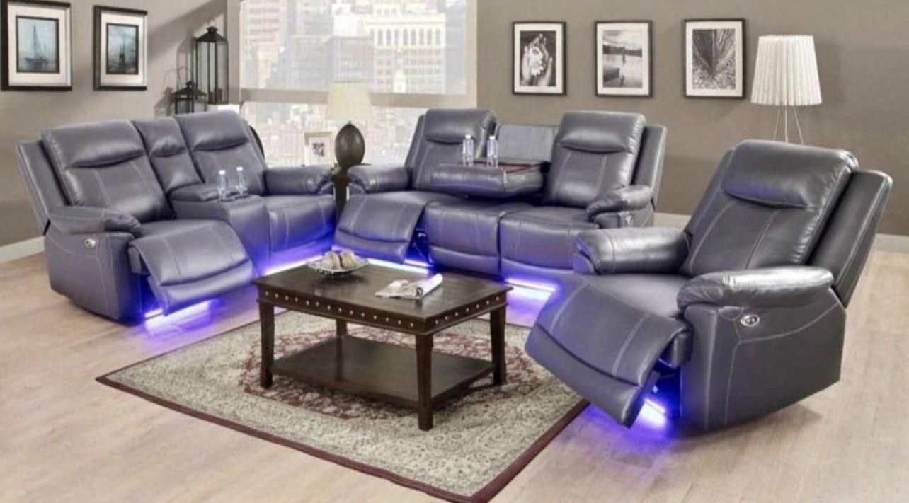 Brand new everything still in packaging this is display picture of the set Sofa and love seat and chair all included Delivery to all areas