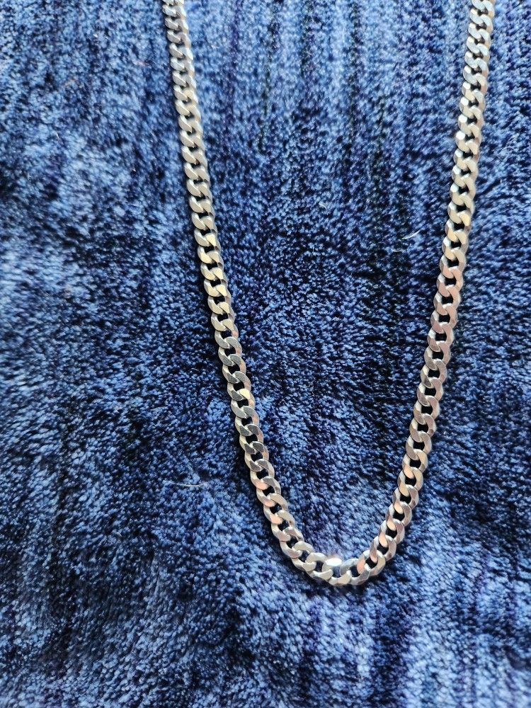 Silver Flat Curb Link Necklace 24"