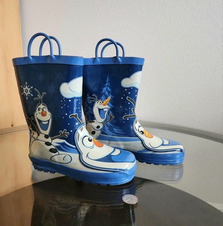 Western Chief Rain Boots Olaf FROZEN Disney Movie Sz Kidz 1. Predominantly blue and white with other colors. Great daily wear and gift idea for the new school year. Pre-owned in very nice condition. Sells as is, please ask all the questions before the purchase.