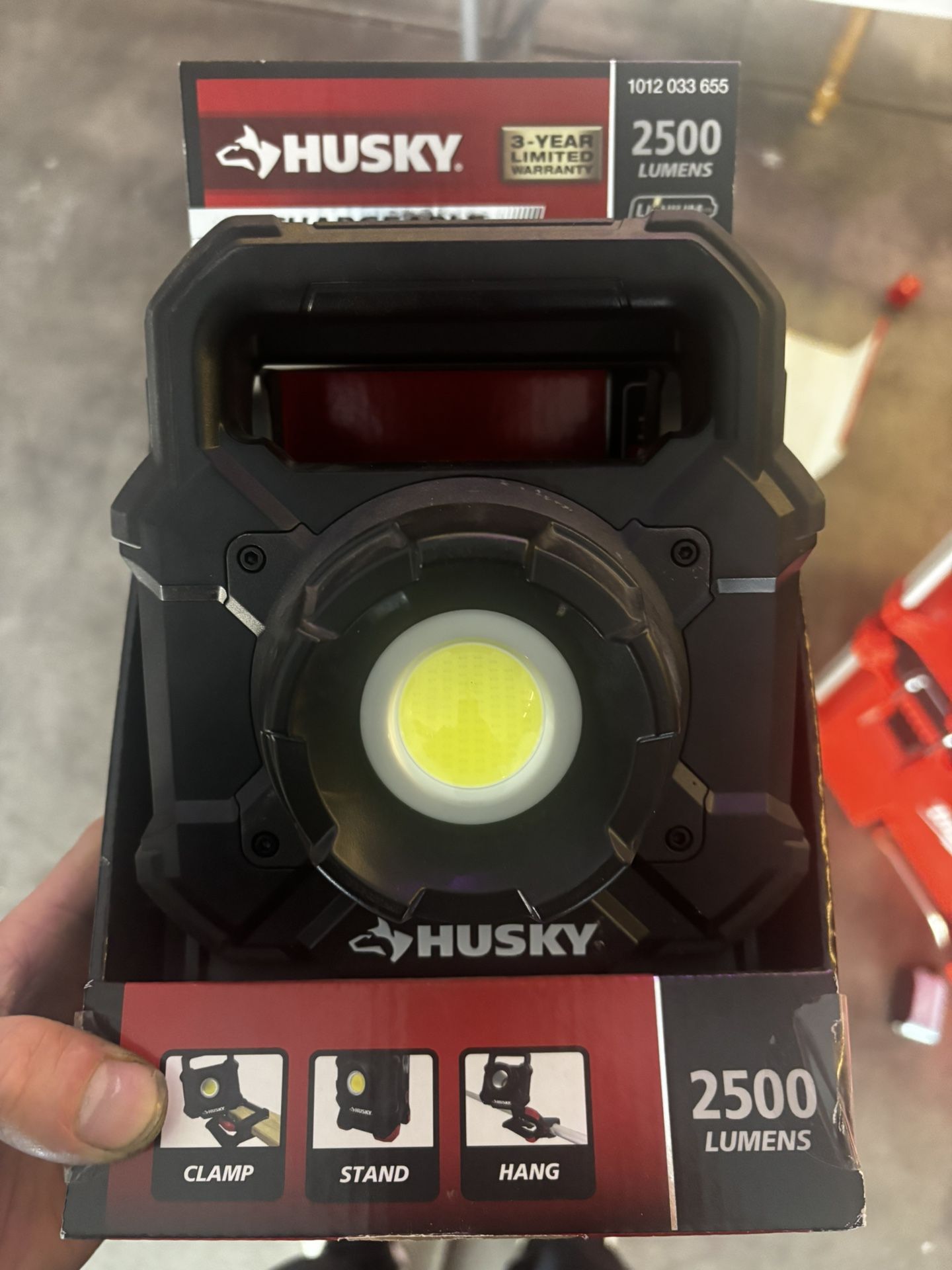 Brand New Husky- 2500-Lumens Rechargeable LED Clamp Work Light- Brand New