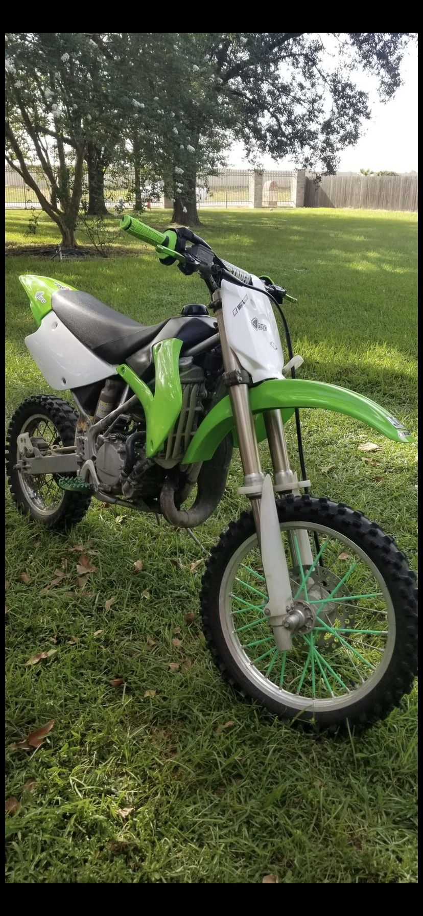 Kx85 fresh top and bottom runs really nice have title and bill of sale just got a brand new plastics on it over all good bike starts first kick