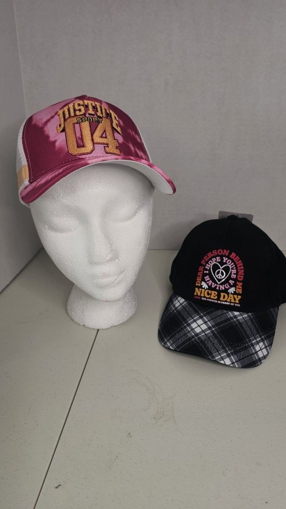 Price is for both. Girls Adjustable Justice Fashion Hats. Pink Justice Sport 04, and black Dear Person Behind Me, I hope You Have A Nice Day. Compliments many styles and fashions. Awesome gift idea.