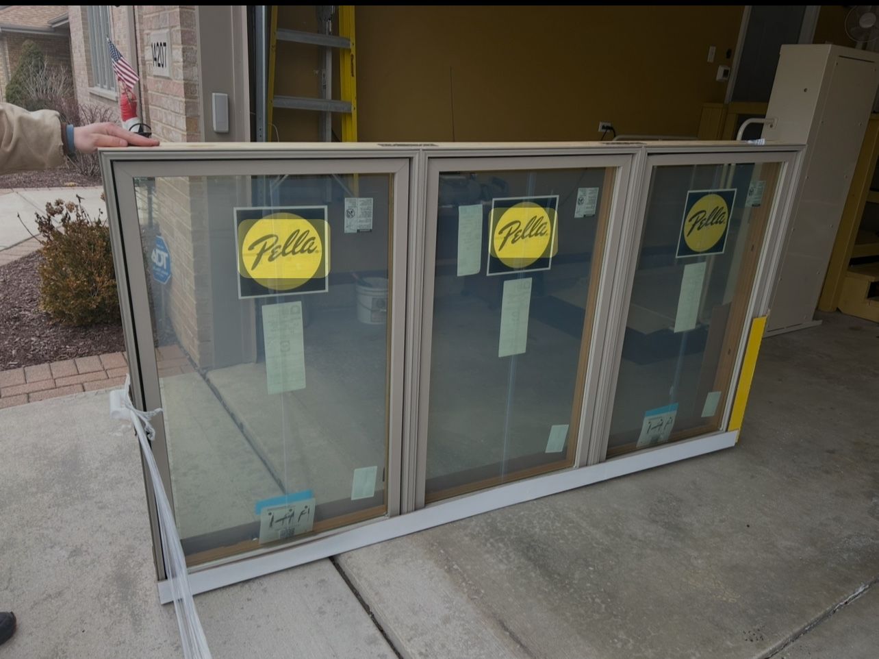 Pella window , light Greg, aluminium out side, wood inside, brand new , special order for $3500 and the size is 87 inches wide and 47 inches tall, 3 panels left and right casement opened