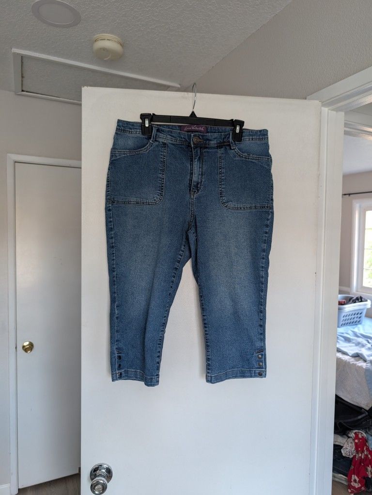 Size 14 In excellent condition, only worn once. Gloria Vanderbilt Jean Capris with metal button design on the leg. Message me for bundle discounts!