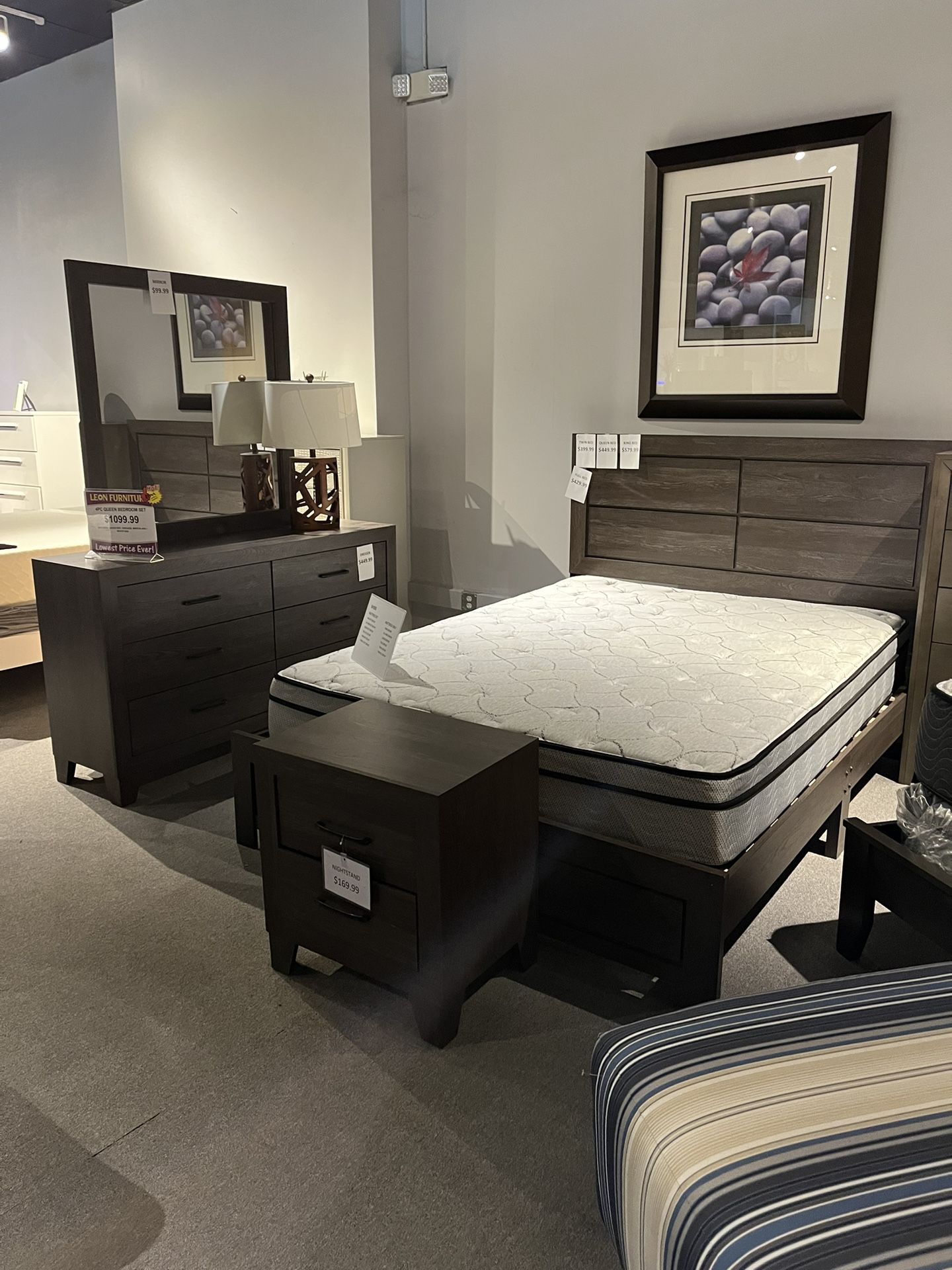 Includes: Queen bed frame, dresser, mirror and nightstand Also comes in King, full and Twin size At Leon Furniture, we sell new furniture at used prices! Click on our profile to view the inventory in stock. Whether you're looking for a dresser, sofa, dining/kitchen table, king/queen/twin/full bedroom set, desk, mattress, couch, sectional, bed frame or something else, we have just what you're looking for. We've been making houses into homes since 2009 by securing special pricing on our items so that we can pass those savings on to you! Why shop at Leon Furniture? ✅Financing- Snap Financing, Progressive and Acima available with no credit check required ✅12 months no interest financing available on approved credit ✅Layaway available ✅Immediate delivery and assembly available for a small fee 🏷️Price Matching - if you find this item cheaper anywhere else, let us know and we'll match that offer! Se habla espanol For more details about this specific item, please send us a message using the Chat button below to be connected with our team or visit our website. If you'd prefer to talk to someone, please give us a call using the Call for quick info button below to get connected with our Customer Support team . We look forward to speaking with you soon!