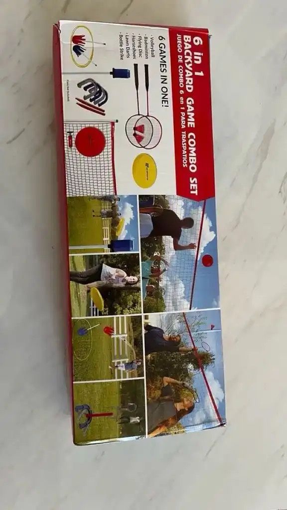 5 in 1 Backyard game combo set Badminton Flying disc Horseshoes Lawn Darts Bottle Strike