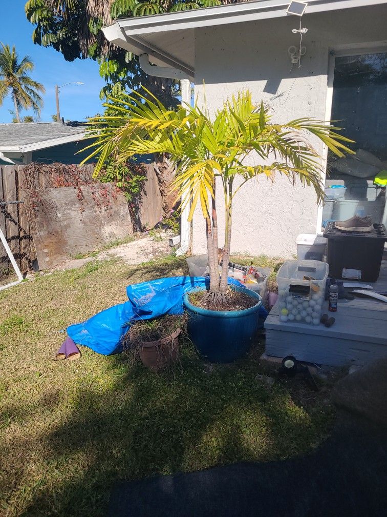 Miniature . Quad, Christmas Palm in ceramic glazed pot.