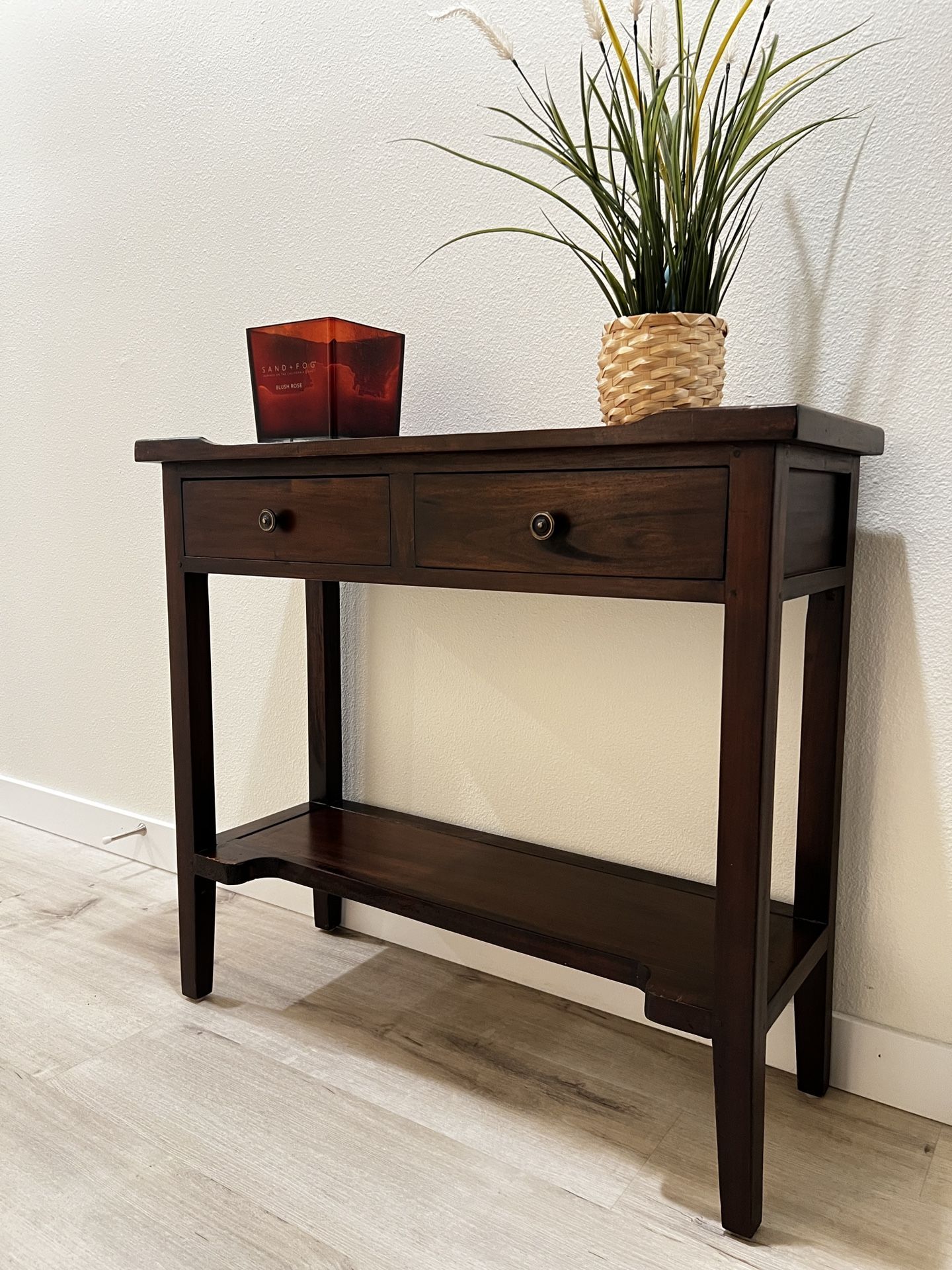 πͺ Made from real solid wood β sturdy and well-built ποΈ 2 smooth-glide drawers for everyday storage π§Ί Open bottom shelf for baskets, shoes, or dΓ©cor π¨ Rich espresso finish that matches many styles π‘οΈ Raised tabletop lip to help prevent items from rolling off π‘ Versatile size β great for small spaces π Dimensions: β’ Length: 33.5β β’ Width: 12 5/8β β’ Height: 30β π Located in King City / Tigard π΅ Cash or Venmo accepted