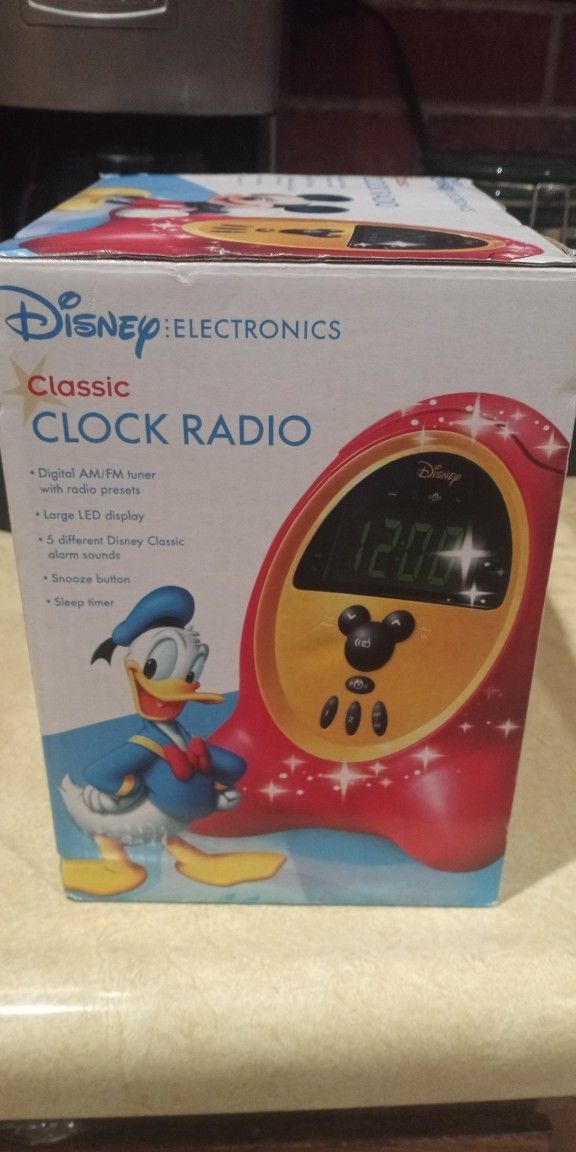 Digital AM,FM tuner With radio Large LED display 5 different Disney Classic alarm sound Snooze button Sleep timer
