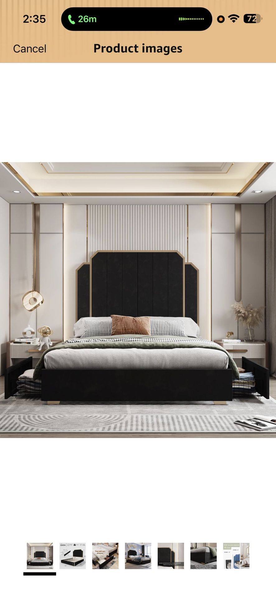(The bed is now disassembled for easier transport.) -Smoking free home ✅ Queen Size Bed Frame with Storage Drawers - High Headboard Upholstered Bedframe in Plush Velvet with Gold Accents (Black, Queen)