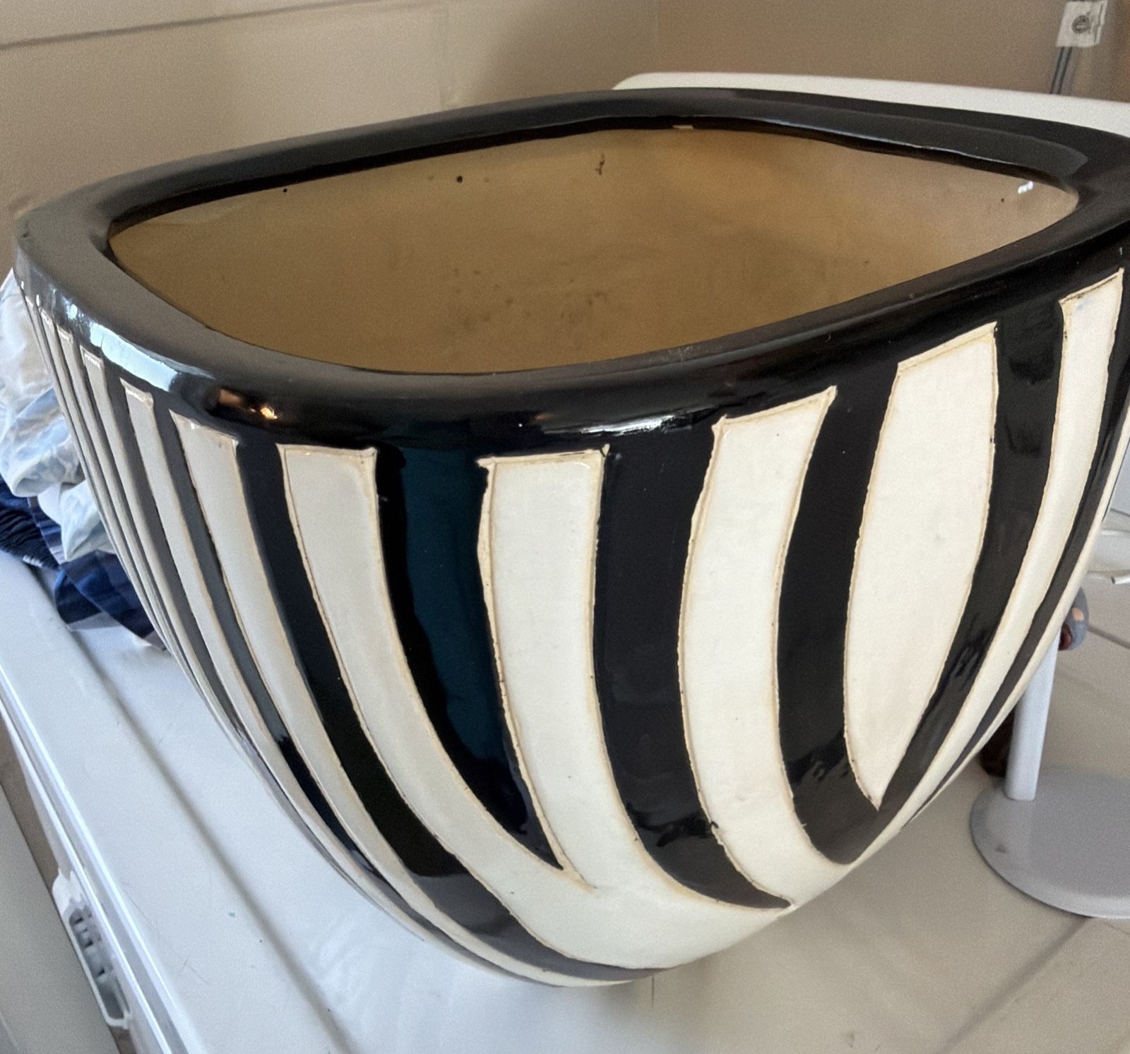Vintage Zebra Stripes Large Decorative Ceramic Plant Pot