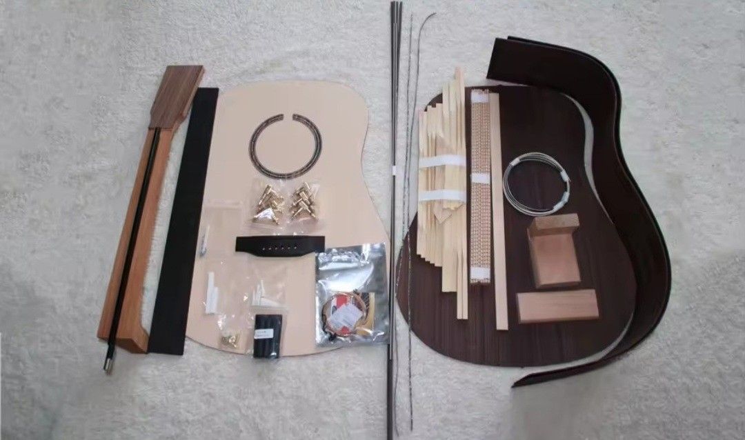 Indian Rosewood Guitar Kit Only 1 kit remains, we will get more soon OM model Solid Indian Rosewood sides and back Spruce (solid) top Ebony Fretboard Complete parts also includes End block, neck block Truss rod Inlays Binding strips Kerfing Rosette Tuners Fretsu Mahogany neck with Rosewood face Nut and saddle Ebony bridge Truss rod Bridge pins Gold tuners Gold end pins_u D'ardario acoustic strings Every part required to build your very own acoustic guitar This is a limited opportunity to build a solid wood guitar out of Rosewood. East Mesa location