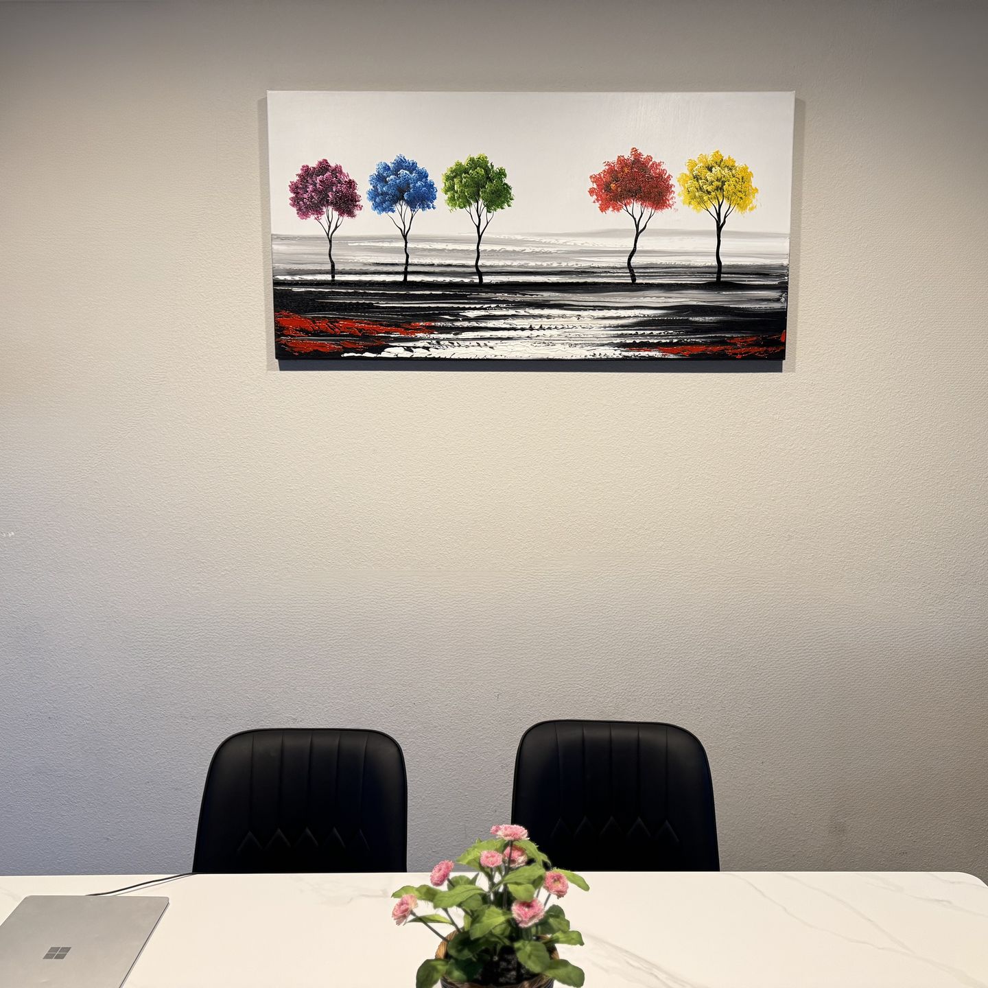 It's been in our house for sometime. It's still like new as it was always in wall landscape canvas wall art Overall Size: 48"W x 24"H Hand Painted colorful tree oil painting on canvas Original price : $150 Offering : $40 Pickup at Bothell