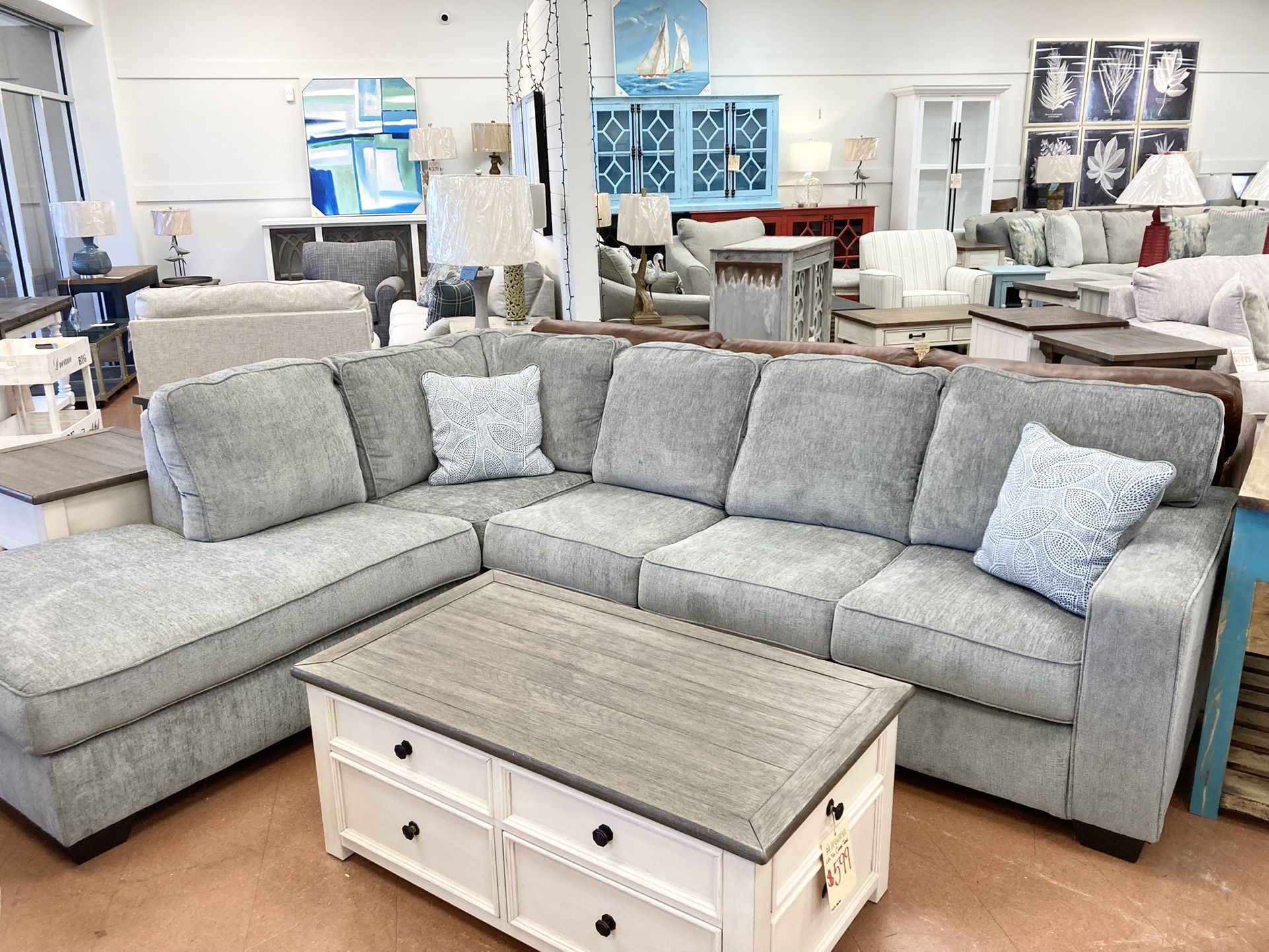 New Chaise Sectional - $999 Versatile Grey Fabric w/Accent Pillows 90” Chaise x 110” Back Reverse Configuration in stock too!! Delivery in Virginia Beach - $149 Rock’s Carolina Furniture 2356 Virginia Beach Blvd Virginia Beach, VA 23454 (next to TJ Maxx @ London Bridge) Open 10 to 7 Monday - Saturday Open 10 to 5 Sunday