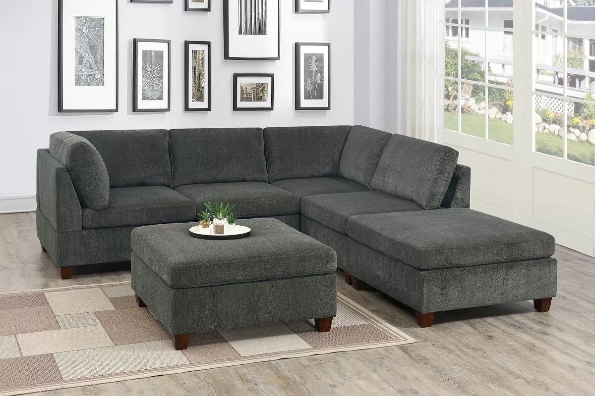 Brand New Grey Super Plush Chenille Modular Sectional Sofa w Ottoman