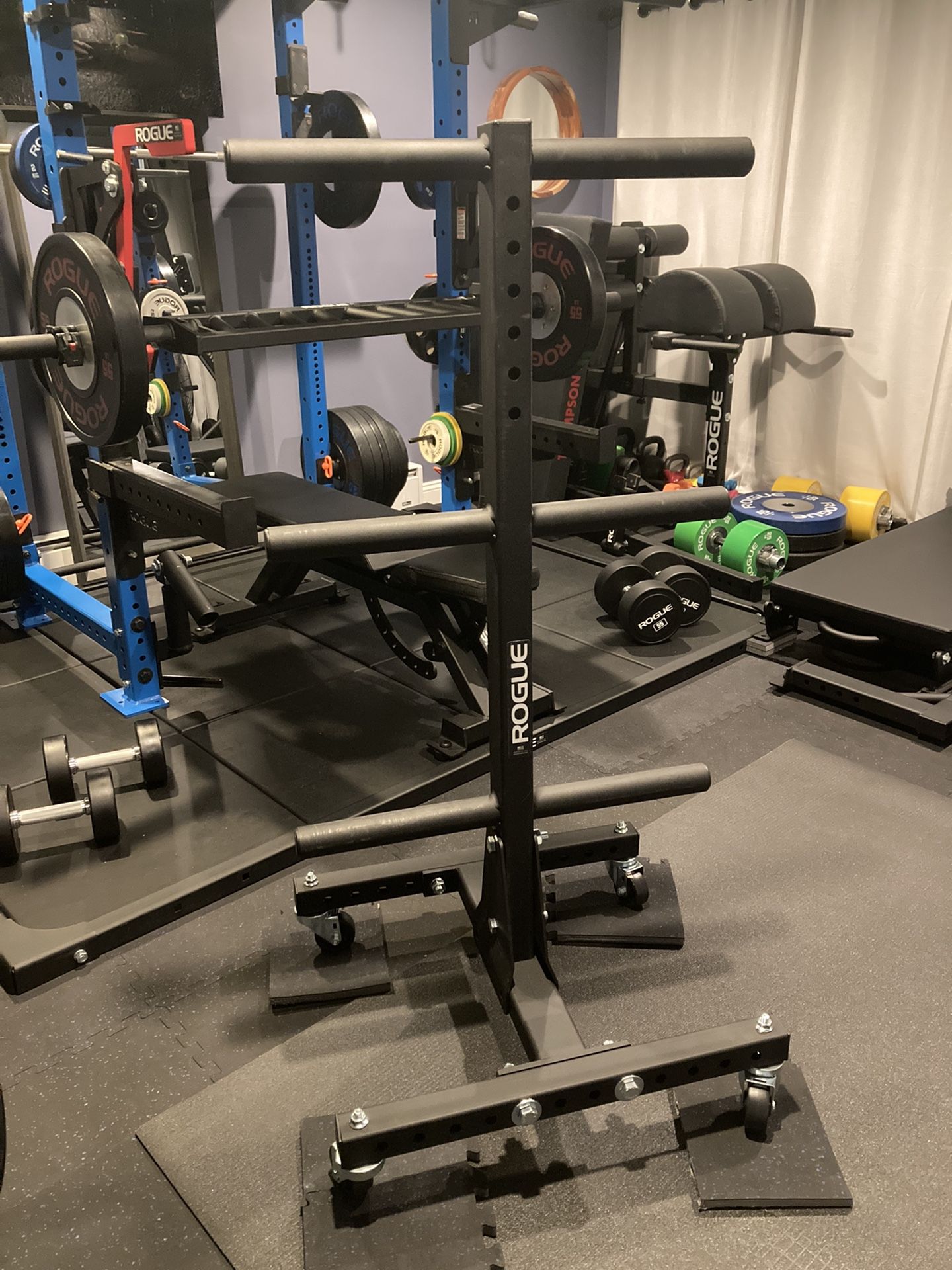 Heavy duty and overbuilt like all Rogue Fitness equipment. This will hold whatever you can throw at it. Perfect for your bumper or Olympic weight plates storage needs Organize your home gym today. Only owned a couple weeks. This weight tree is in excellent near new condition. I just paid $323.44 for this tree 2 weeks ago.