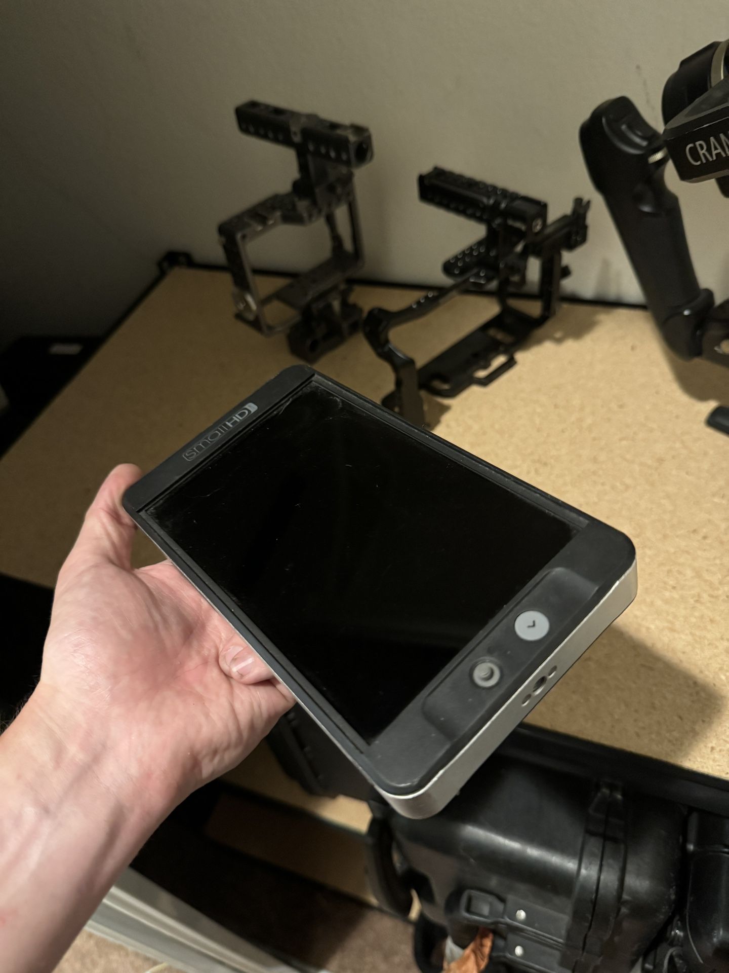This is a small HD 702 Lite on camera 7” monitor. There’s a small mark on the screen (about 1/8inch) when it’s on but otherwise works perfectly. Has SDI and HDMI.